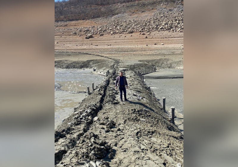 Berisha ka publikuar edhe pamje nga aty ku disa javë më parë ishte liqeni, ndërsa sot është kthyer në llucë dhe baltë.