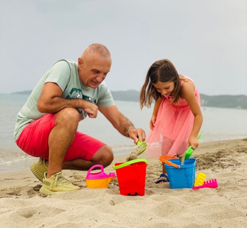 Ish-Presidenti Ilir Meta është shfaqur sot me një imazh të ri, të freskët e plot ngjyra duke shoqëruar në lojën me rërë një fëmijë.