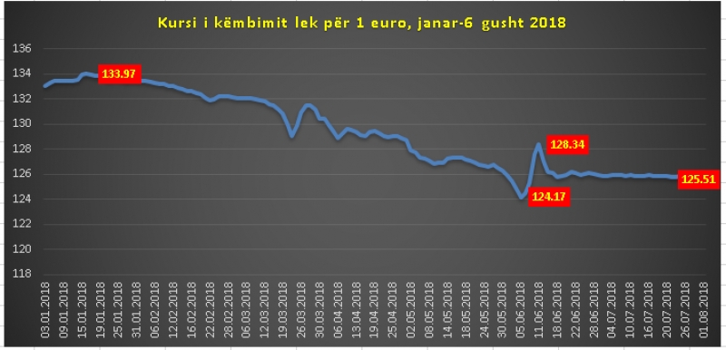 Që pas ndërhyrjes së Bankës, euro ishte stabilizuar në kuotën e 126 lekëve, siç duket edhe nga grafiku dhe rëënia në fillim të gushtit ka qenë gjithsesi e lehtë.