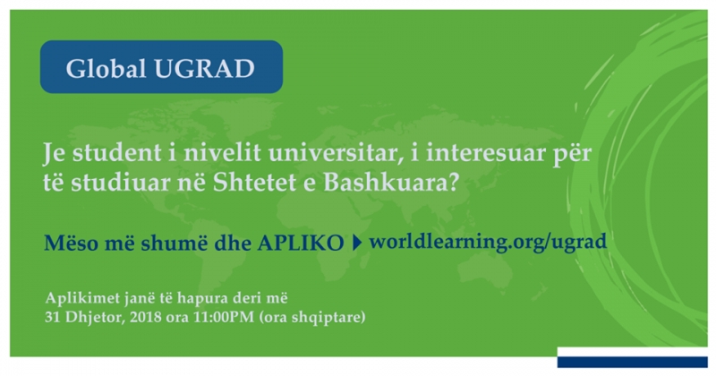 Programi Global UGRAD është një program i financuar nga Departamentit i Shtetit. i cili jep bursa për studentë të nivelit universitar në 55 vende të botës. Studentët caktohen në kolegje dhe universitete në të gjithë Amerikën, ku marrin pjesë në një semestër të nivelit parauniversitar pa diplomë. Bursa mbulon udhëtimin, shkollimin, dhomën, siguracionin për aksidente/sëmundje, një pagesë të vogël mujore, dhe shpenzime për libra. Pjesëmarrësit jetojnë në konvikt me bashkëmoshatarët e tyre amerikanë ose në banesa me familje amerikane. Global UGRAD është një program shkëmbimi i pavarur, i konceptuar për t’i ekspozuar studentët ndaj sistemit arsimor, shoqëror dhe kulturor amerikan. Të gjithë studentëve u kërkohet të marrin pjesë vullnetarisht në aktivitetet e shërbimit komunitar, si dhe të marrin pjesë në aktivitete të zhvillimit profesional si pjesë e programit Global UGRAD. Studentët largohen nga Amerika me idenë për t’u bërë udhëheqës në profesionet dhe komunitetet ku jetojnë. Studentët që kanë mbaruar programin Global UGRAD mund të aplikojnë për programin Fulbright, të përfitojnë specializime të rëndësishme ndërkombëtare, dhe të punojnë në biznese ose administratë në vendet e tyre. Konkurenca për programin është shumë e lartë dhe në bazë merite. Finalistët do të përzgjidhen në bazë të rezultateve akademike, aftësive drejtuese, dhe përgatitjes së tyre për të studiuar në Shtetet e Bashkuara.
