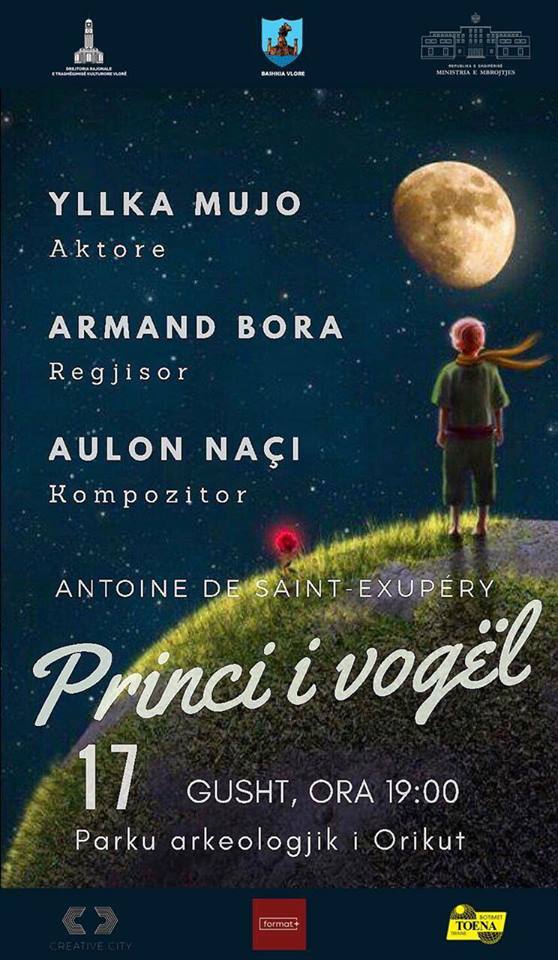 Kryevepra botërore “Princi i vogël” e shkrimtarit Antoine de Saint-Exupery vjen për artdashësit nga aktorja e mirënjohur Yllka Mujo, regjisori Armand Bora dhe kompozitori Aulon Naci në një vend sa alternativ aq dhe të veçantë,në Fontanën Monumentale të parkut arkeologjik të Orikut.