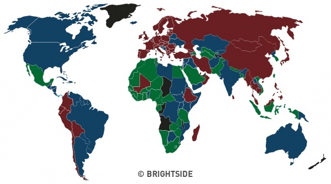 Kjo hartë më poshtë tregon më së miri ngjyrën e pasaportave të çdo shteti: