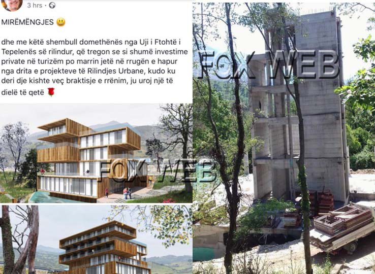 Mëngjesin e sotëm ai ka publikuar dy foto të projektit në dukje ekologjik, dhe disa metra larg rrjedhës së Drinos. Hoteli mbahet i rrethuar dhe mezor mund të shkrepet ndonjë foto nga kureshtarët.