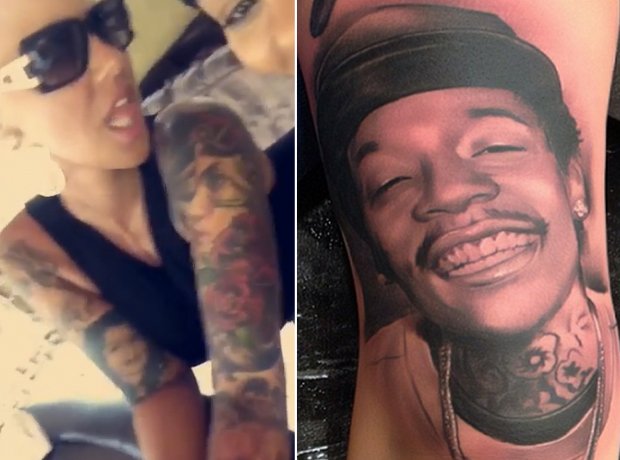 Amber Rose bëri tatuazh në krahun e saj portretin e ish-bashkëshortit, Whiz Khalifa. Pas ndarjes edhe ajo e mbuloi imazhin e tij me disa lule.