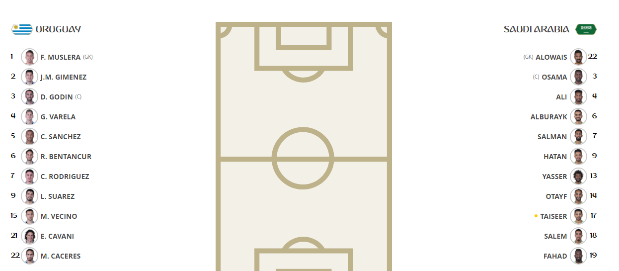 Ndërkohë dy trajnerët e ekipeve, Oscar Tabarez dhe Juan Antonio Pizzi, kanë publikuar formacionet titullarë.